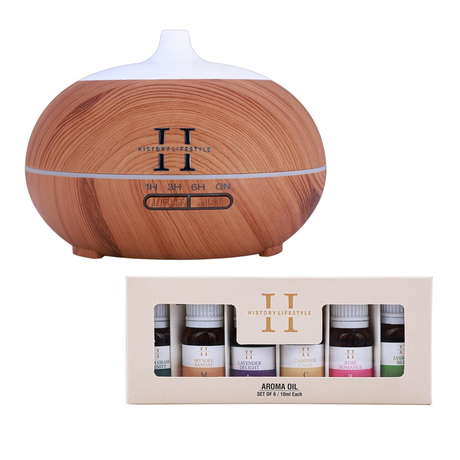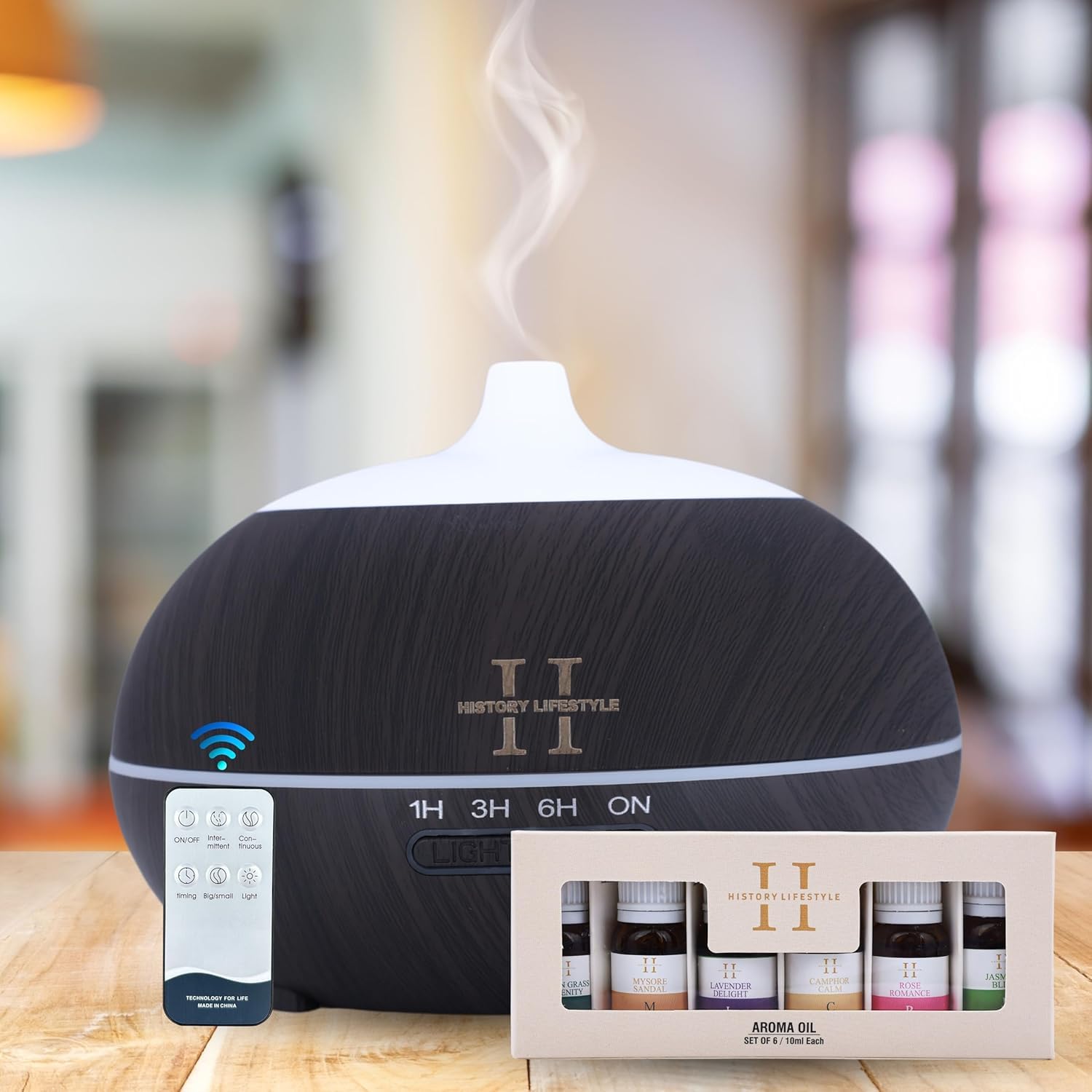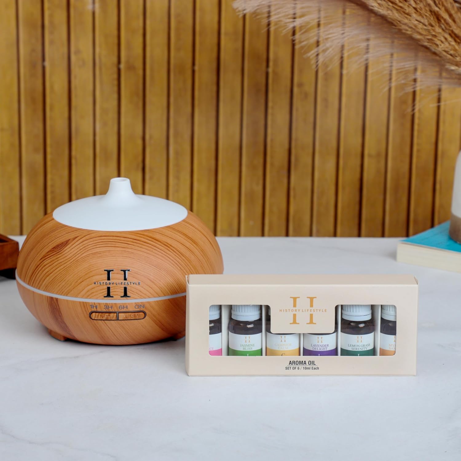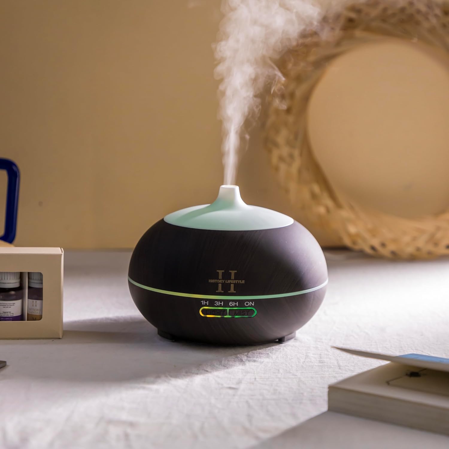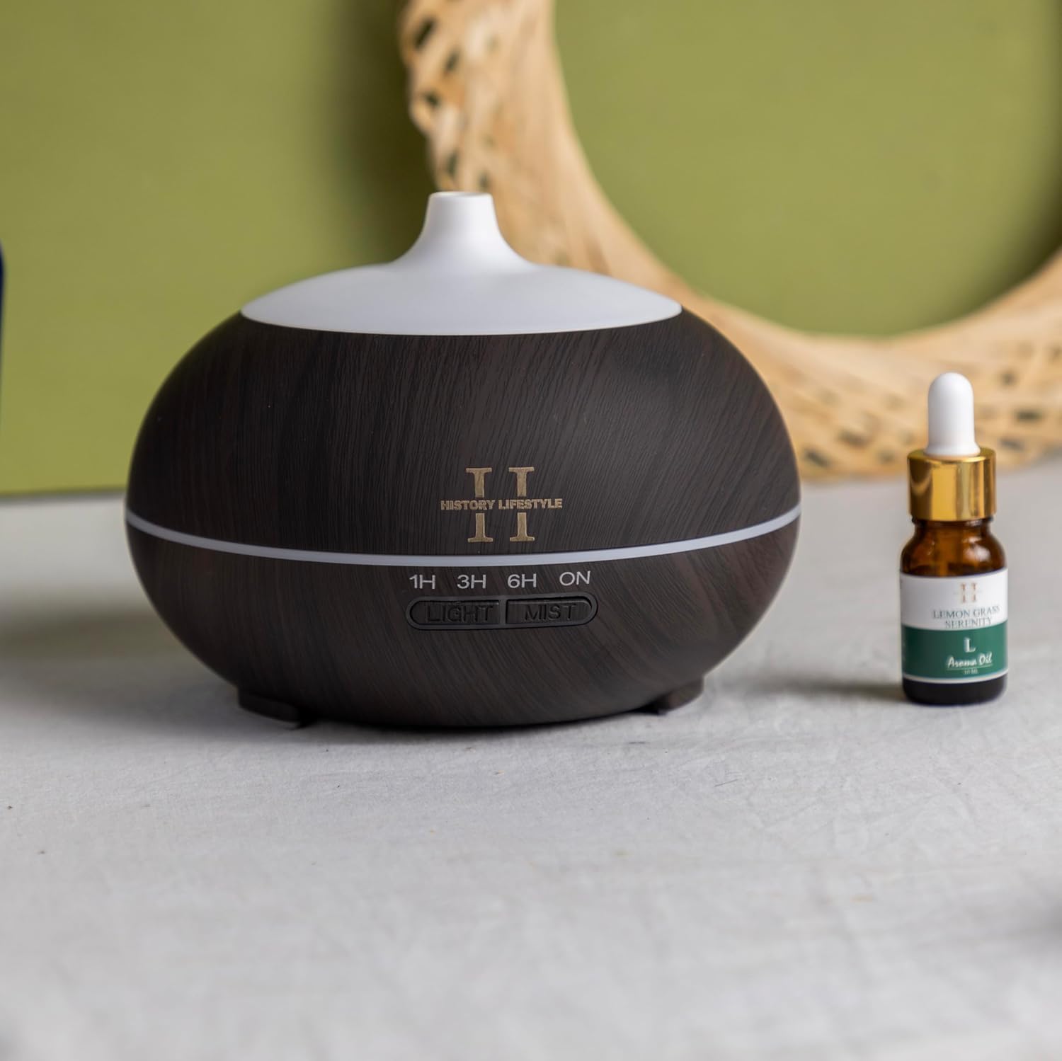 Introducing the ELIXIR Diffuser by History Lifestyle – your go-to device for daily relaxation, stress relief, and air refreshment. Crafted with a natural wood grain finish and elegant design, this ultrasonic cool mist diffuser transforms any space into a sanctuary of scent and serenity.With mist timer options (1H,3H, 6H, ON) and soft LED lighting, ELIXIR is perfect for bedrooms, offices, yoga studios, and more.It diffuses essential oils into a fine mist that hydrates the air and enhances your mood – all whileoperating whisper-quietly