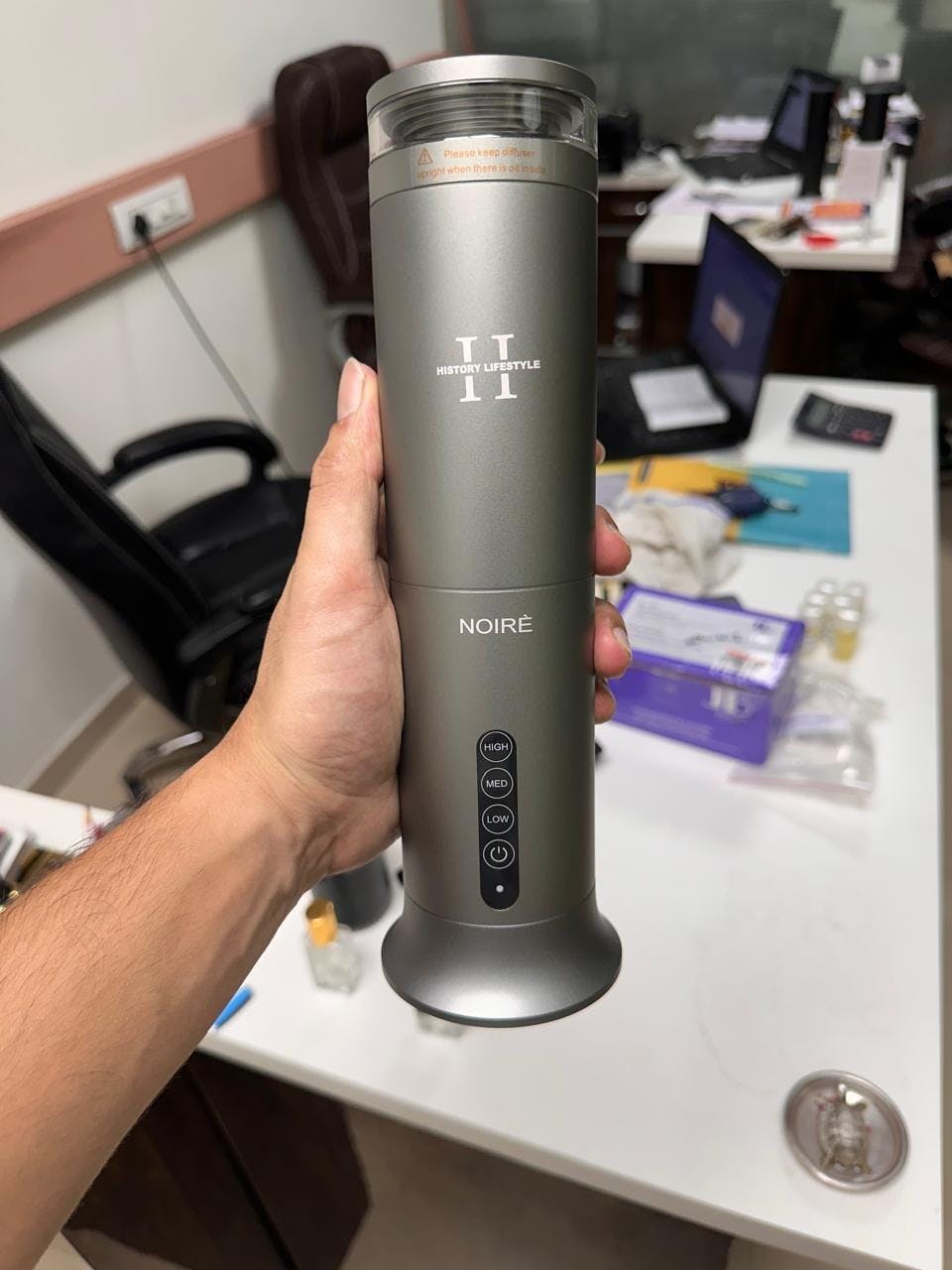 Introducing the NOIRÈ Diffuser by History Lifestyle – a stylish, compact, and powerful smart aroma diffuser designed for those who want portability and performance in one. Equipped with a 4000mAh built-in battery, this diffuser offers long-lasting, cordless use and can scent areas up to 200m³ with ease.Whether you're at home, in the car, or at the office, NOIRÈ’s app-controlled functionality and customizable fragrance intensity allow you to personalize your aromatherapy experience with just a few taps. Safe for kids and pets, and available in 4 elegant colors, NOIRÈ combines technology and design for a truly elevated scenting solution.