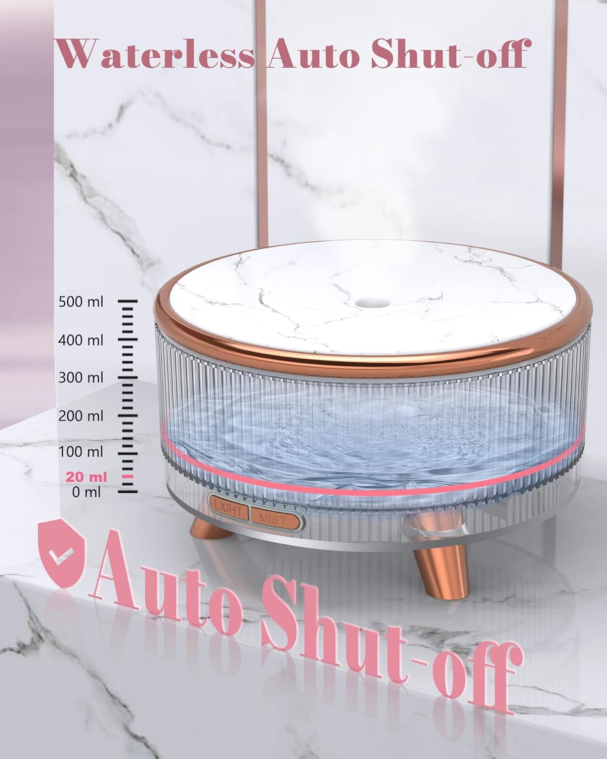 Add elegance and calm to your space with the ROSE AND PETALUltrasonic Diffuser by History Lifestyle – a stunning blend of sophisticated design and advanced aromatherapy technology. Featuring a marble-textured top, gold accents, and a glowing 360° LED light ring, this diffuser is more than just functional – it’s a decor statement.Equipped with a 500ML tank, the VERDÉ diffuser uses ultrasonic technology to create a cool, aromatic mist that enhances air quality and well-being. With built-in 1H, 3H, and 6H timer settings, and a separate Light & Mist control switch, it’s designed to deliver a personalized wellness experience.